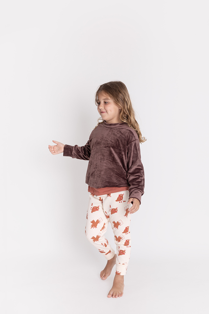 Es un  algodon con frisa grueso y abrigado, muy suave y con la cantidad de elastano ideal que necesitan los chicos para moverse y estar cómodos. Tiene cintura ajustable con con elastico y cinta para adaptarse a todos los niños! Es el ítem ideal para pleno invierno.