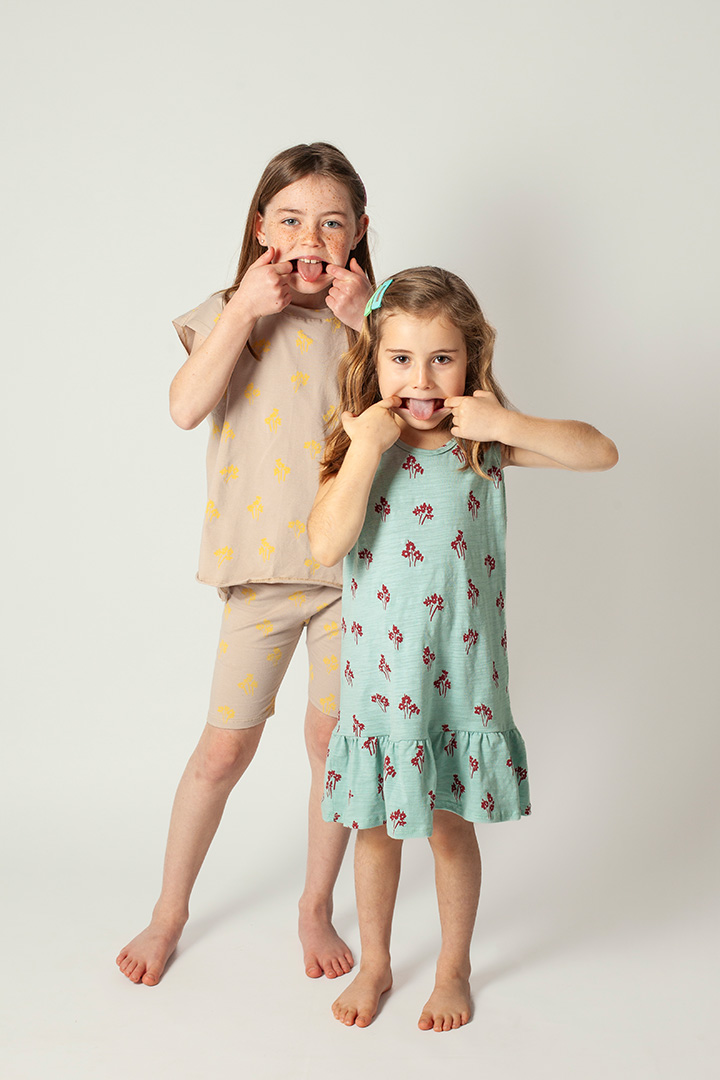 Calza corta confeccionada en jersey de algodón con lycra, con estampa continua realizada en serigrafía con tintas al agua (aptas para el uso de bebés y niños). Cuenta con elástico en la cintura para un ajuste seguro. Disponible del talle 24 meses al 7/8 años.