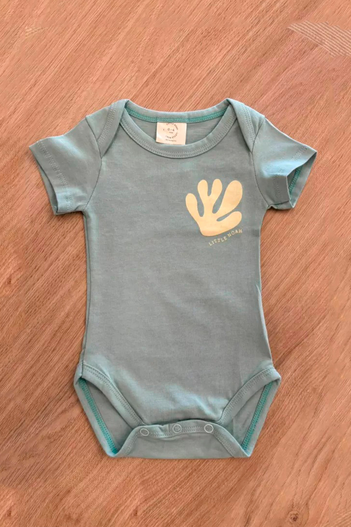 BODY AQUA STARFISH, con cuello americano para cómodo acceso y 3 broches pañaleros, este body combina estilo y funcionalidad.