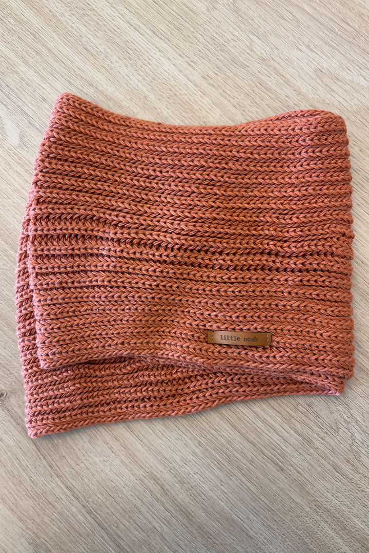 Infinito tejido con detalle de etiqueta de cuero con la marca.