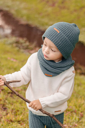 Un infinito es como una bufanda pero unida en los extremos, formando un cuellito largo para darle una o dos vueltas al cuello de los peques 🙂 Podes combinarlo con el GORRO TEJIDO LN.
