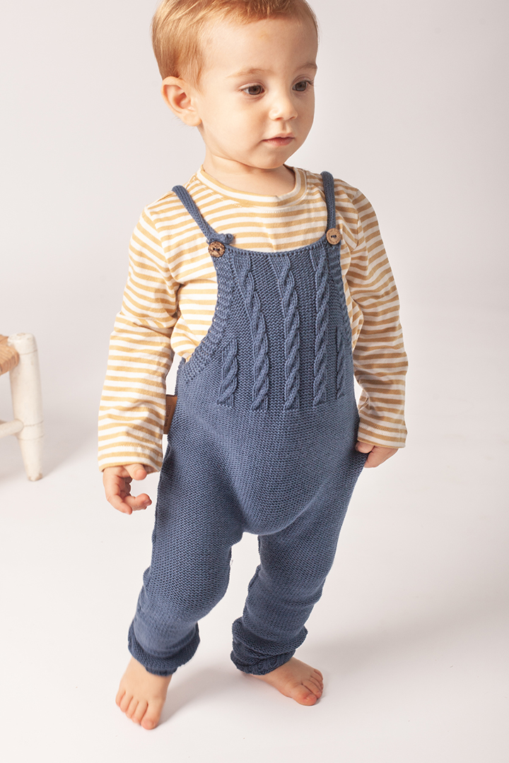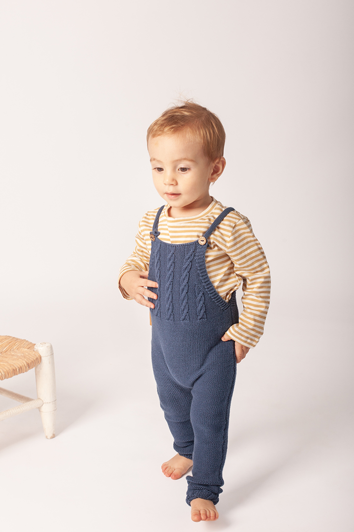 Jardinero tejido confeccionado 100% hilo de algodón hipoalergénico.