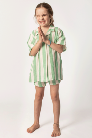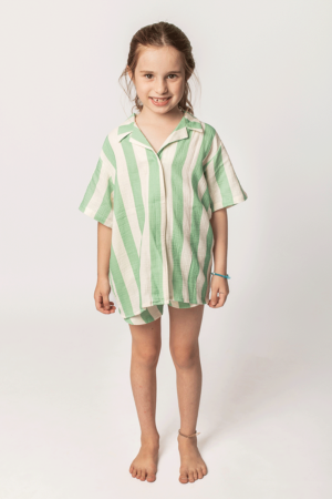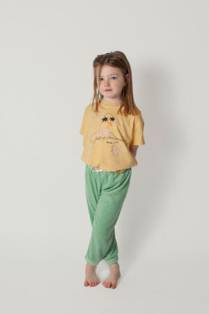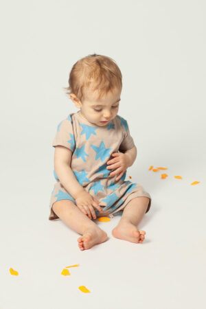 Remera manga corta confeccionada en jersey de algodón, con estampa continua realizada en serigrafía con tintas al agua (aptas para el uso de bebés y niños). Disponible del talle 12/18 meses al 7/8 años.